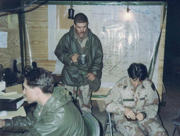 Hard at work in the Gunfighter TOC; SGT Brent Smith, SPC Jeffery Blintz, SFC Rachel East